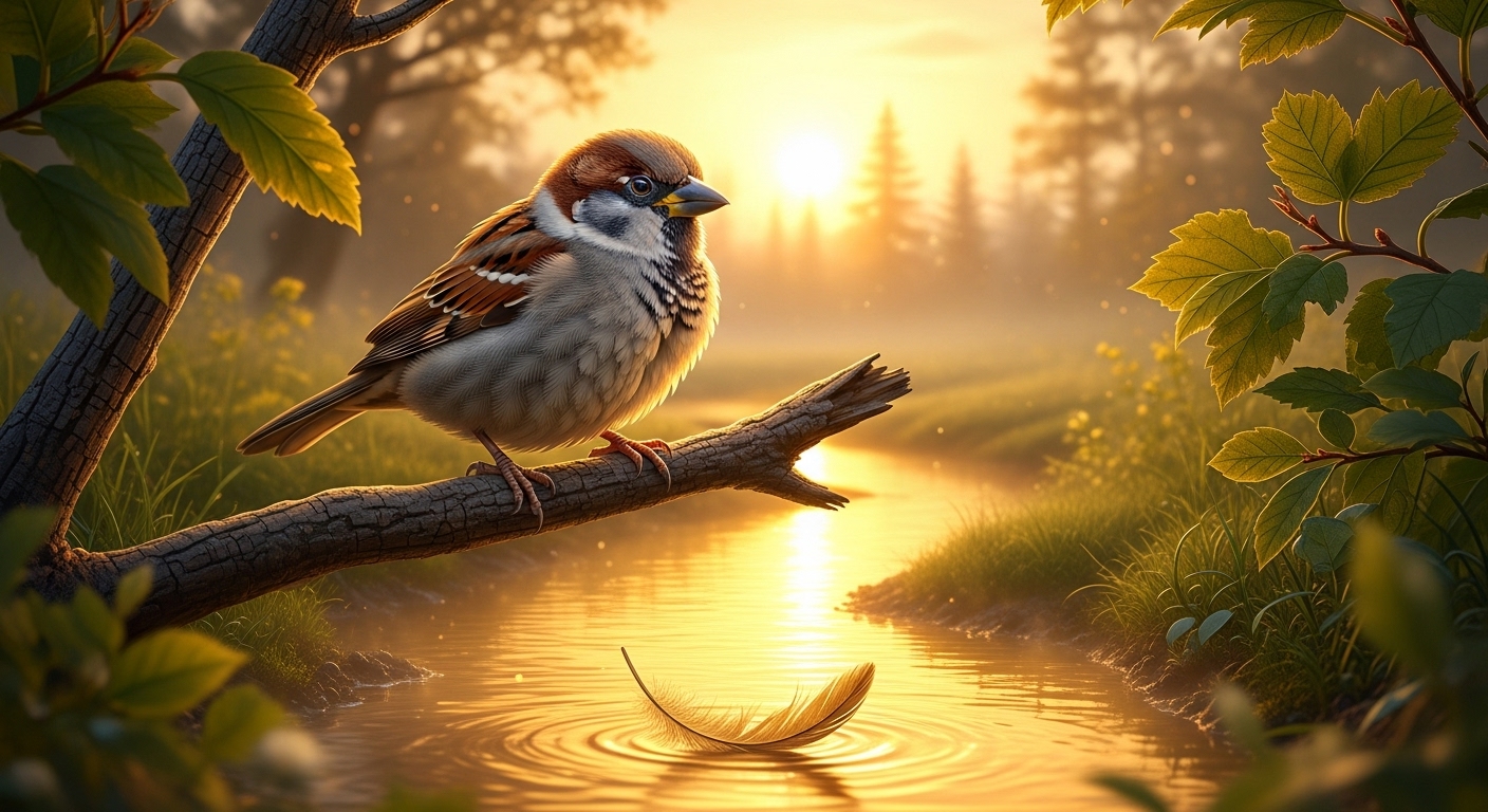 And so, the forest flourished, guided by a sparrow who drank from the Golden Stream but carried its weight with grace.