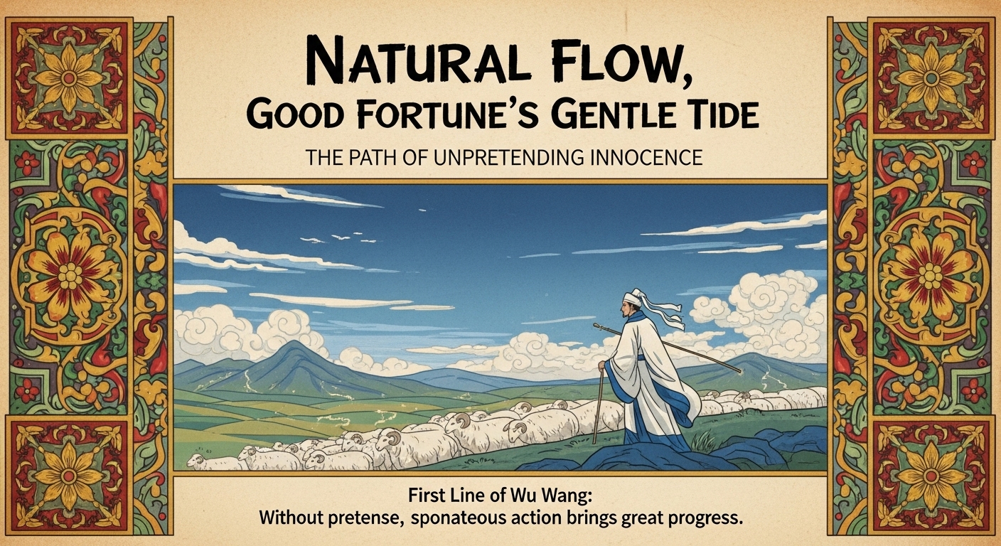 Annotation: I Ching Wu Wang hexagram first line: "Innocent behavior brings good fortune."