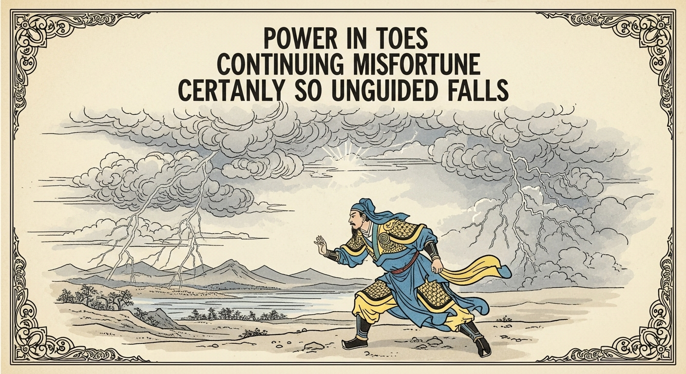 This line warns of eager but unripe power leading to failure if pushed forward prematurely. Matching part in the tale: "At the outset, the power stirred in his toes, eager to advance; but continuing rashly would bring misfortune, for it was certainly so that unguided strength led to falls." This symbolizes holding back immature energy to avoid mishaps.