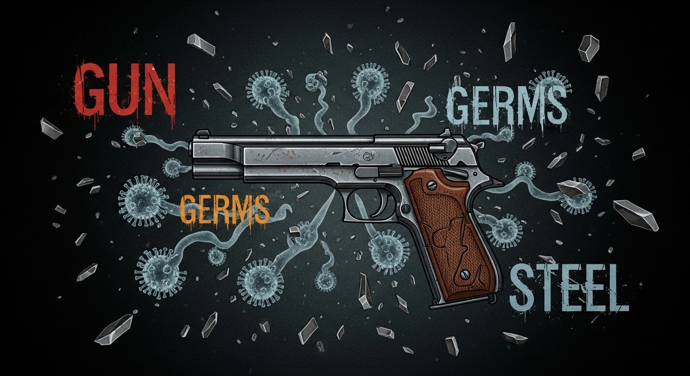Guns, Germs, and Steel is a book that finds the cause of the development of human civilization and inequality not in race or genes, but in the differences in geographical environment and the resulting food production, domestication, and technology diffusion. The author's core argument is that Europe came to dominate the world not because of its superiority, but because it was the first to acquire the tools of its environment: 'guns', 'germs', and 'steel'.